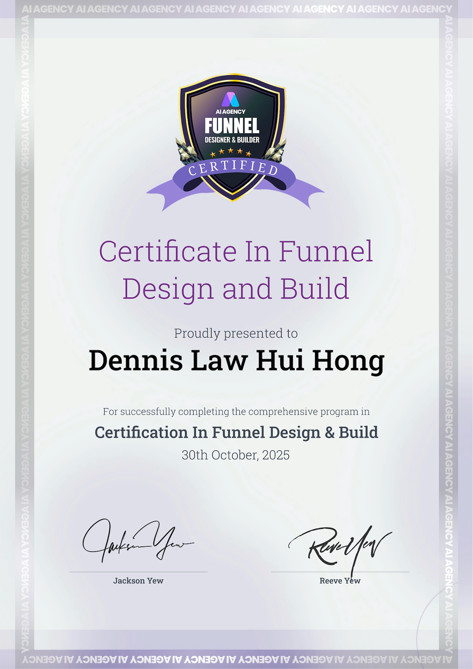 The AIA Funnel Design & Build Certificate validates my ability to plan, design, and implement funnels that don’t just look good, but perform.